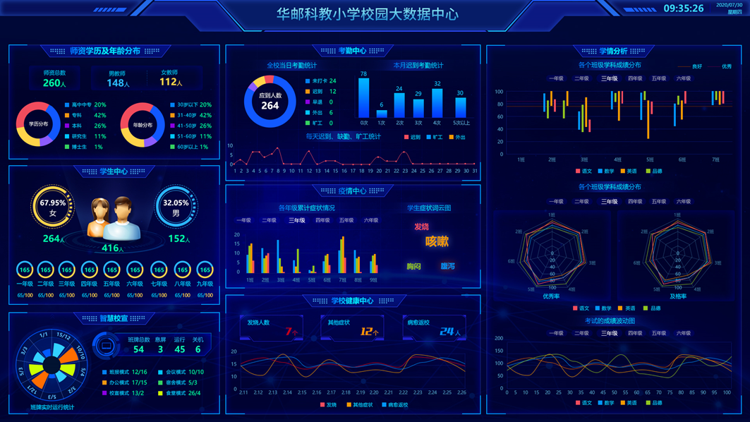 教师、学生在校情况全面展示,提高领导监督管理能力。